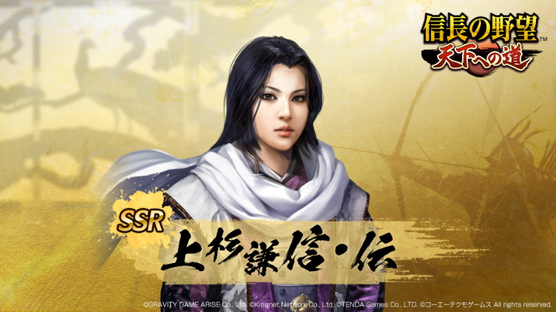 SSR武将「上杉謙信・伝」は、この楽市楽座で初登場!ぜひこの機会に募集片を集めてみてください!