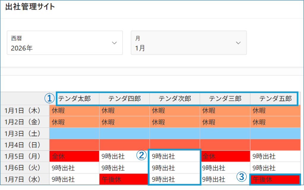 ③視認性の高い表示…色分け表示により、状態や区分を一目で把握
